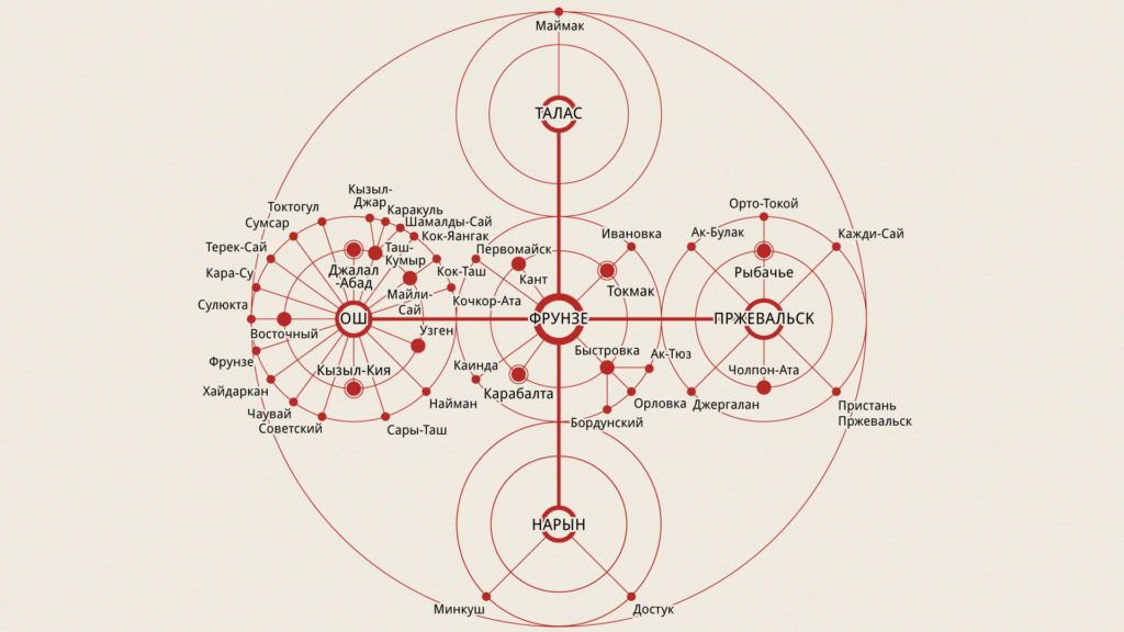 Radial diagram of Kyrgyz cities