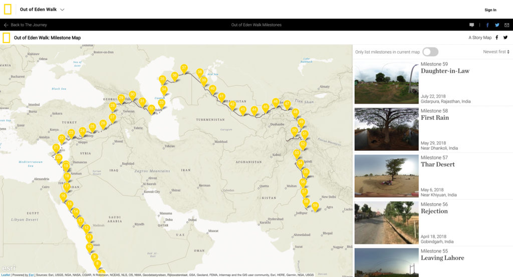 Out of Eden Walk: milestones map