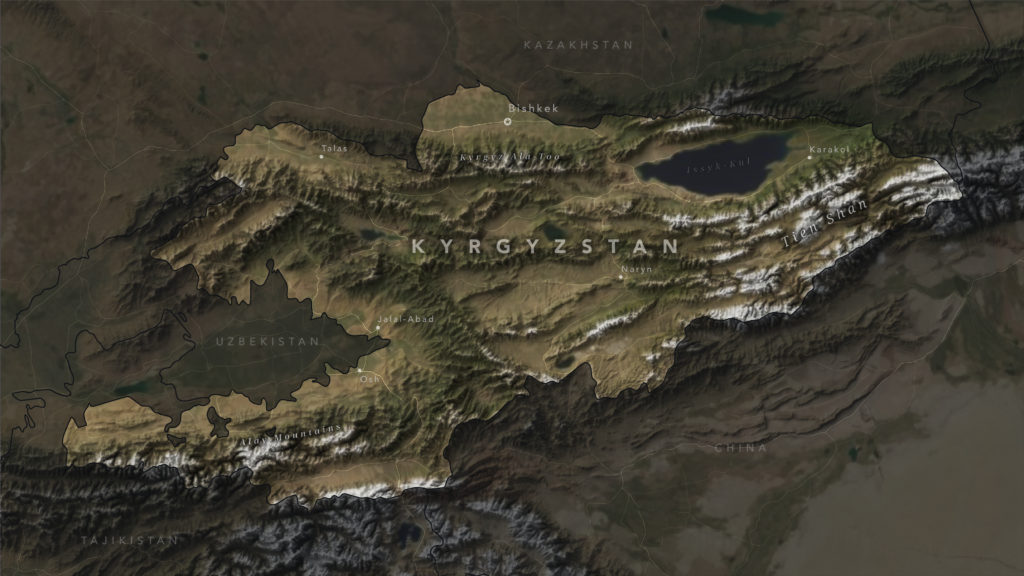 Exaggerated relief map of Kyrgyzstan