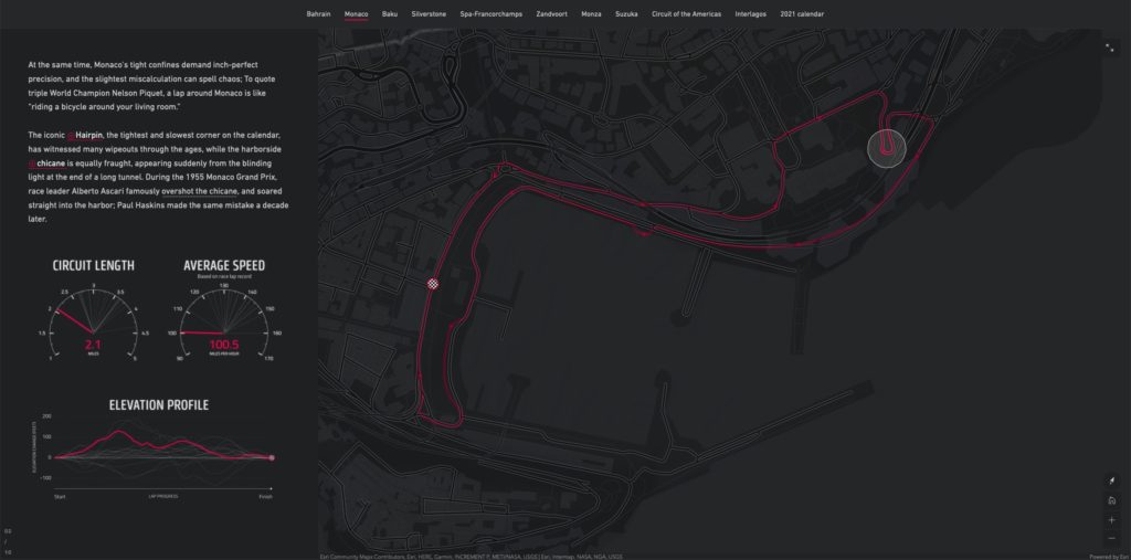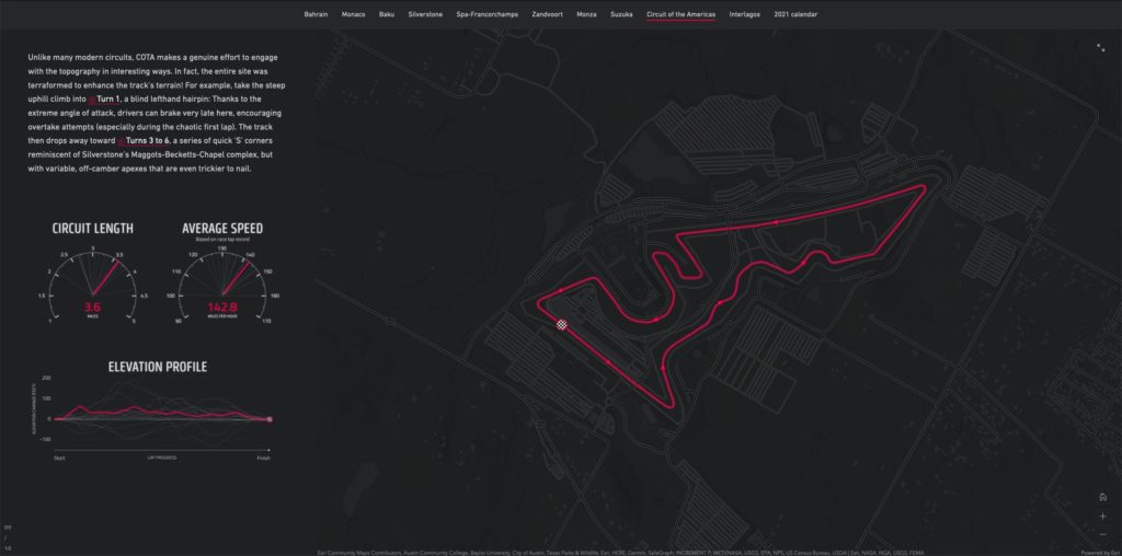 This was a concept for an interactive, multimedia story about Formula One circuits. Although the story was never published (thanks, lawyers), I designed several maps and graphics highlighting the unique characteristics of some of the sport’s most iconic tracks.